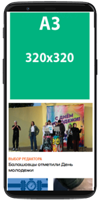 Баннер A3 - имеет одинаковый размер 320х320рх в десктоп-версии и мобильной версии сайта.