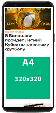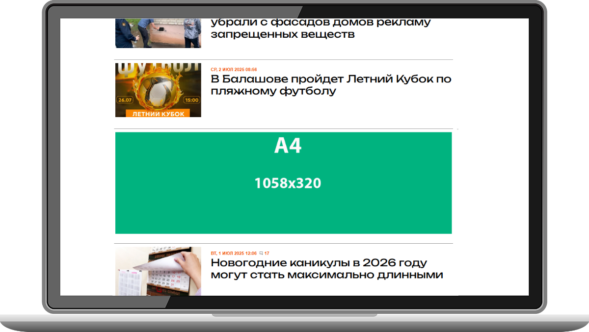 Баннер A4 - имеет размер 1058х320рх в десктоп-версии сайта и 320х320px в мобильной. Размещается после 5ой новости основной ленты новостей.
