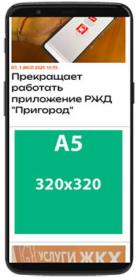 Баннер A5 - имеет размер 1058х320рх в десктоп-версии сайта и 320х320 в мобильной. Размещается после 10ой новости основной ленты новостей.
