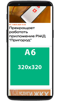 Баннер A6 - имеет размер 1058х320рх в десктоп-версии сайта и 320х320 в мобильной. Размещается после 15ой новости основной ленты новостей.