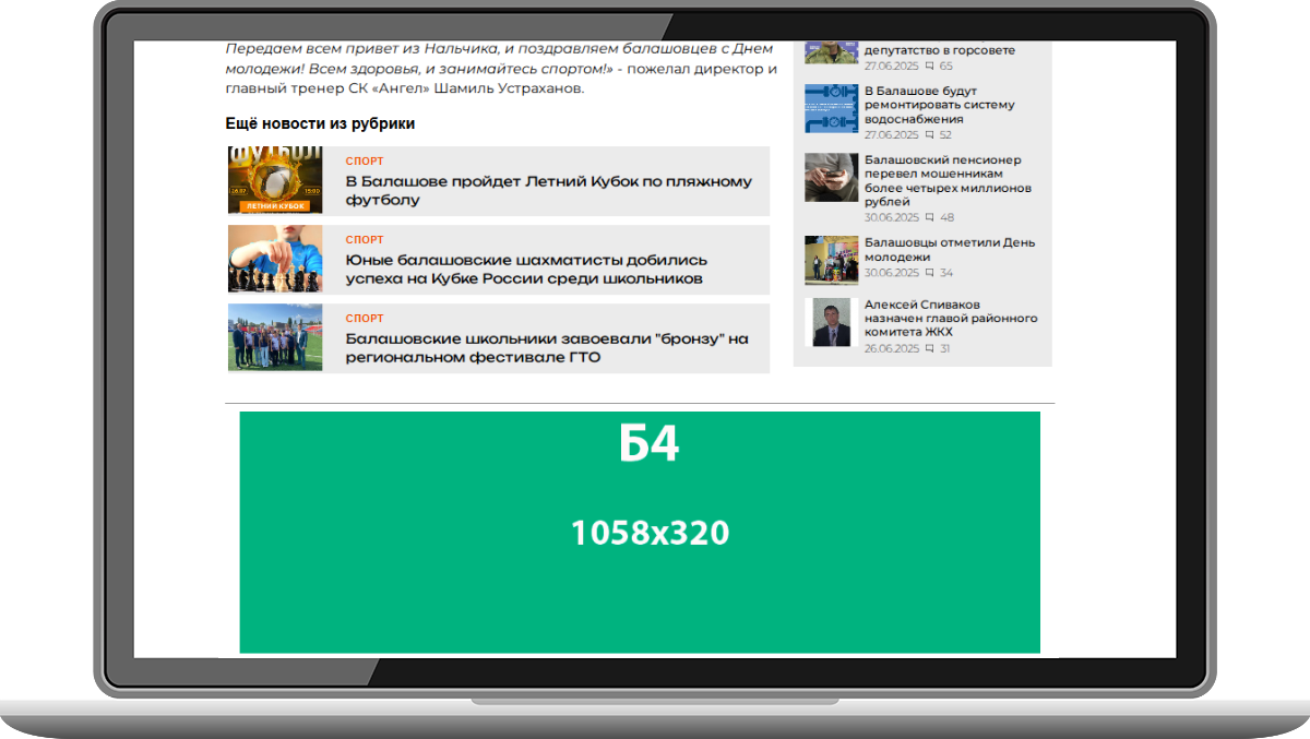 Баннер Б4 - имеет размер 1058х320рх в десктоп-версии сайта и 320х320px в мобильной. Размещается после текста новости.